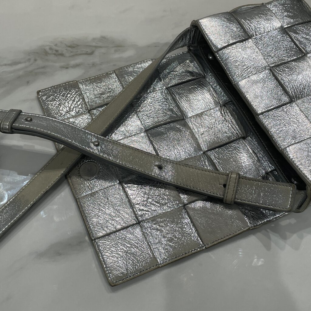 メタリックレザーの色褪せを復活!ボッテガヴェネタの《カセット》シルバーを綺麗に補色✨