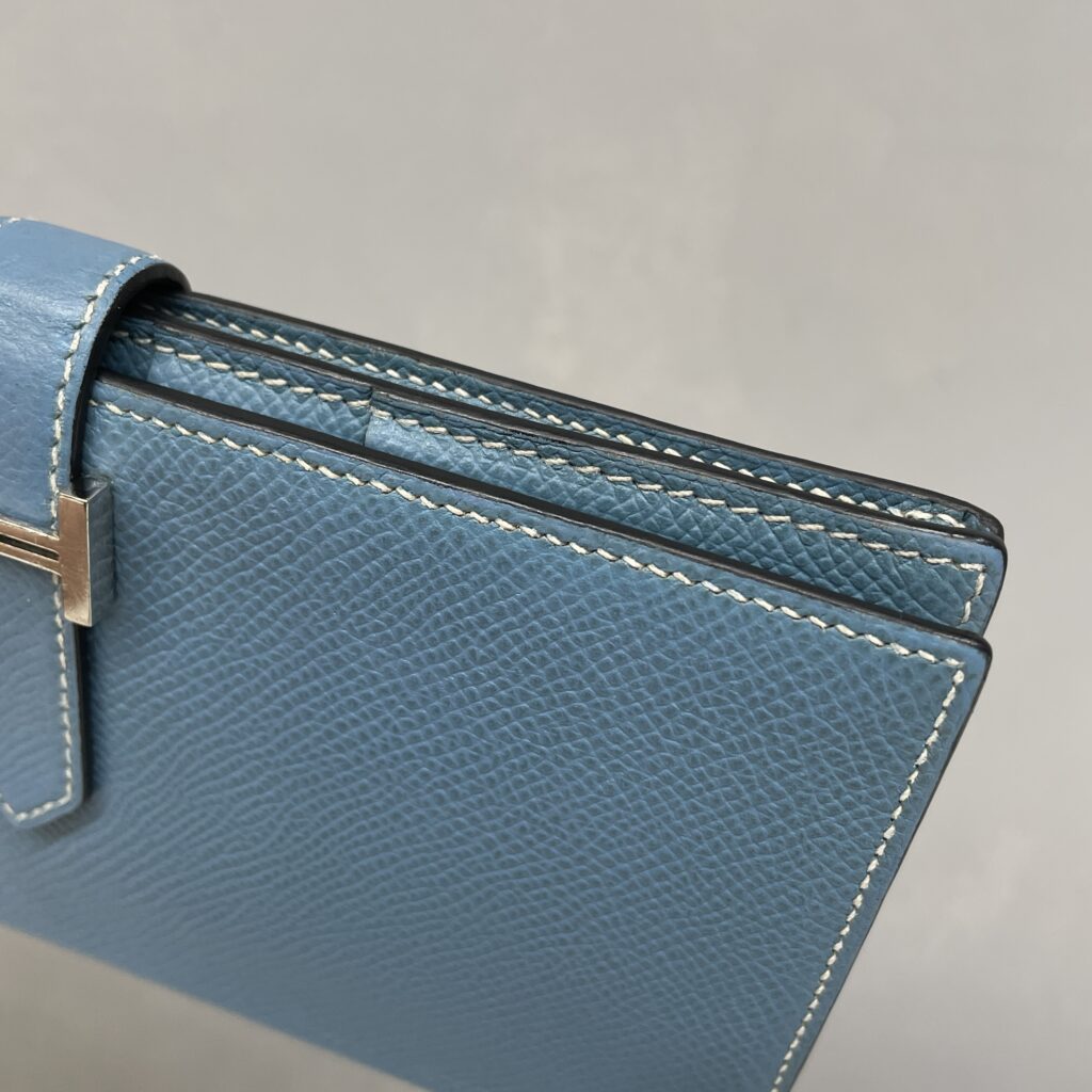 すっきりとしたフォルムに上品さが詰まったお財布ですが、淡いブルージーンは汚れや色あせが目立ちやすいカラーでもあります。