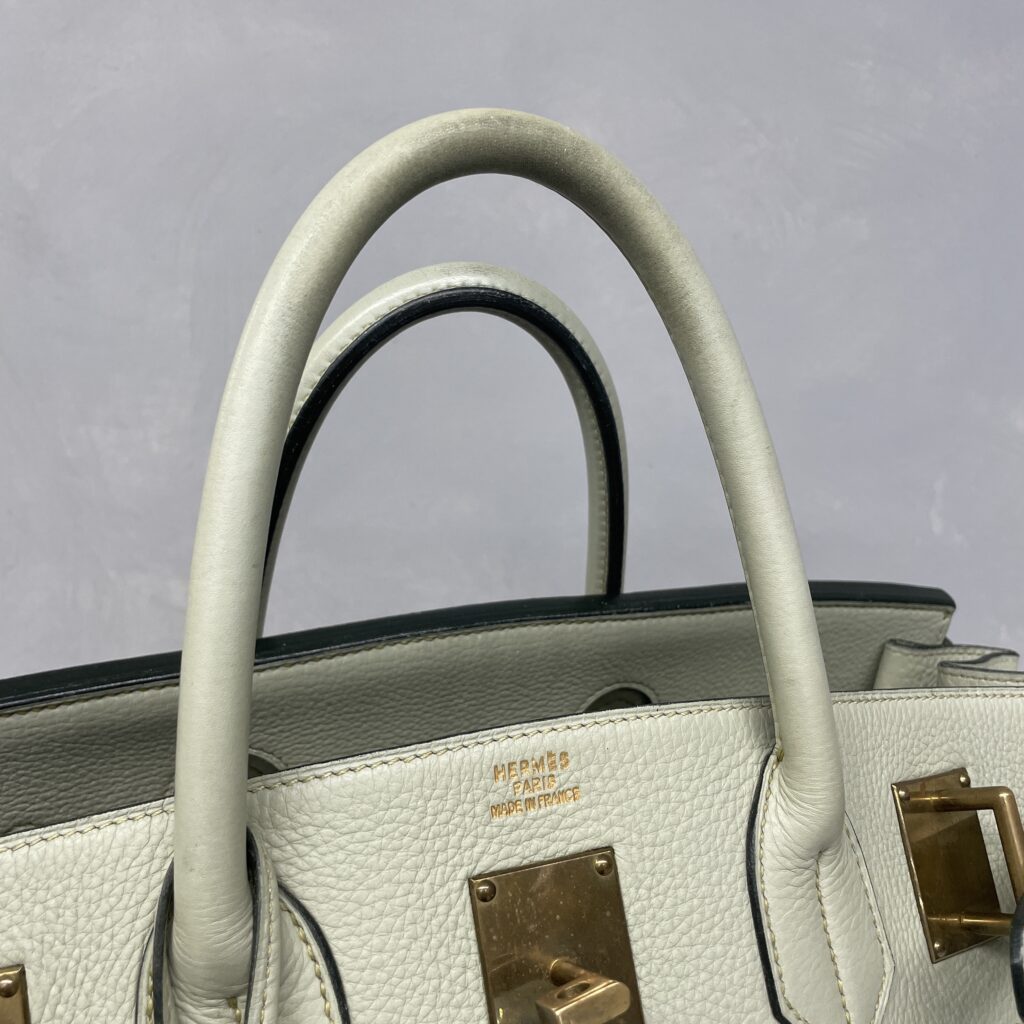 バーキンやオータクロアのように重量のあるバッグは、持ち手に負荷が集中しやすく、摩擦や皮脂の影響によってハンドルだけダメージが進行しやすい場合もあります。